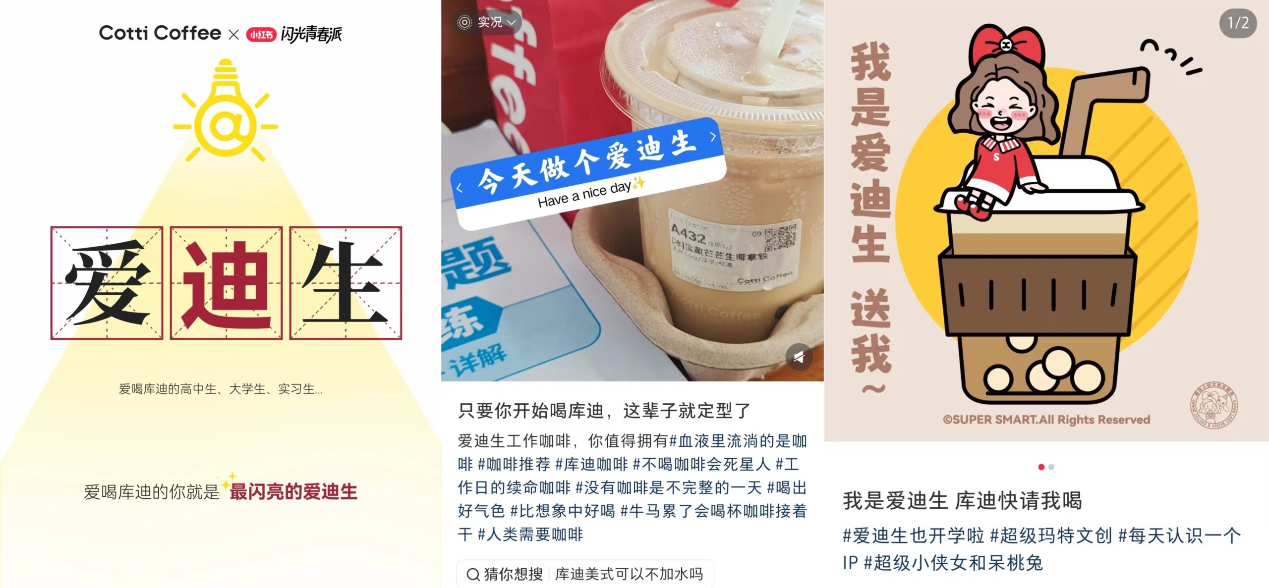 通过与年轻人喜爱的 IP 高频联动,库迪不仅让消费者始终保持新鲜感与关注度,更将“喝库迪”逐渐培养为一种高频复购的消费习惯。就连小红书上,都兴起了“爱迪生”的名词新解:爱喝库迪的大学生、高中生、实习生。看来库迪早就成了消费者早 C 晚 C 的刚需。