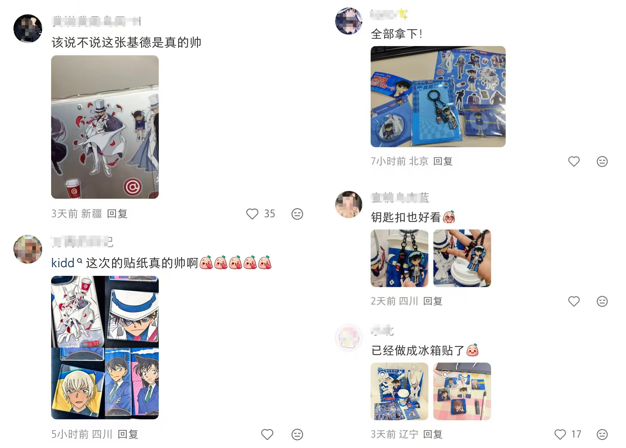 周边诚意满满,谷子款式多到离谱:贴纸、温感小卡、冰箱贴……柯南粉一整个暴冲,拿到手直接 kuku 晒图。
