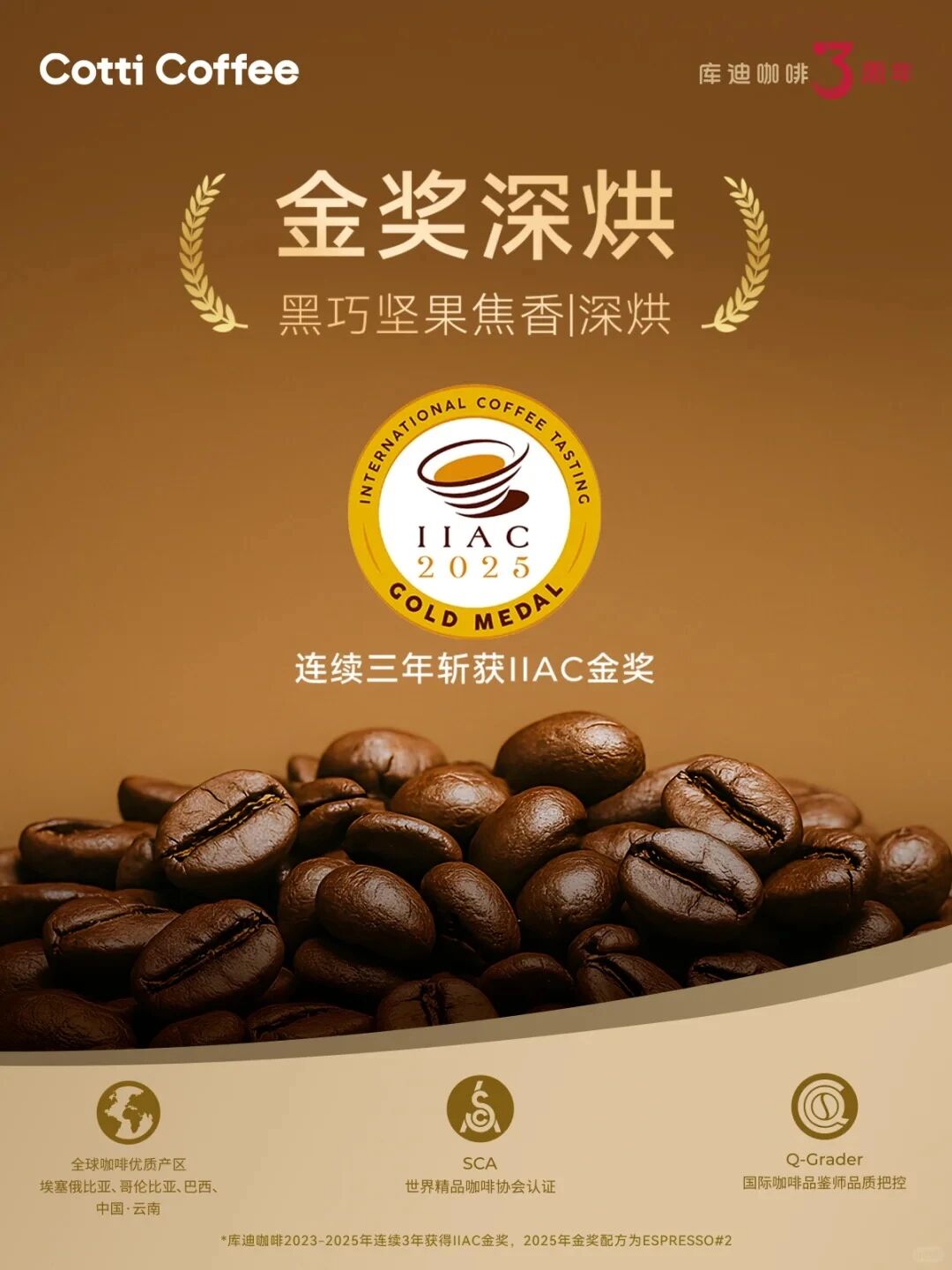 在价格打到底的同时,品质却没掉线。库迪调配的 100% 阿拉比卡咖啡豆,连续三年荣获国际咖啡品鉴者协会( IIAC )金奖。这种以“极致性价比”提供“金奖品质”的强反差,牢牢占据用户心智,也加速了咖啡大众化普及,重塑消费者对“一杯好咖啡”的判断标准。