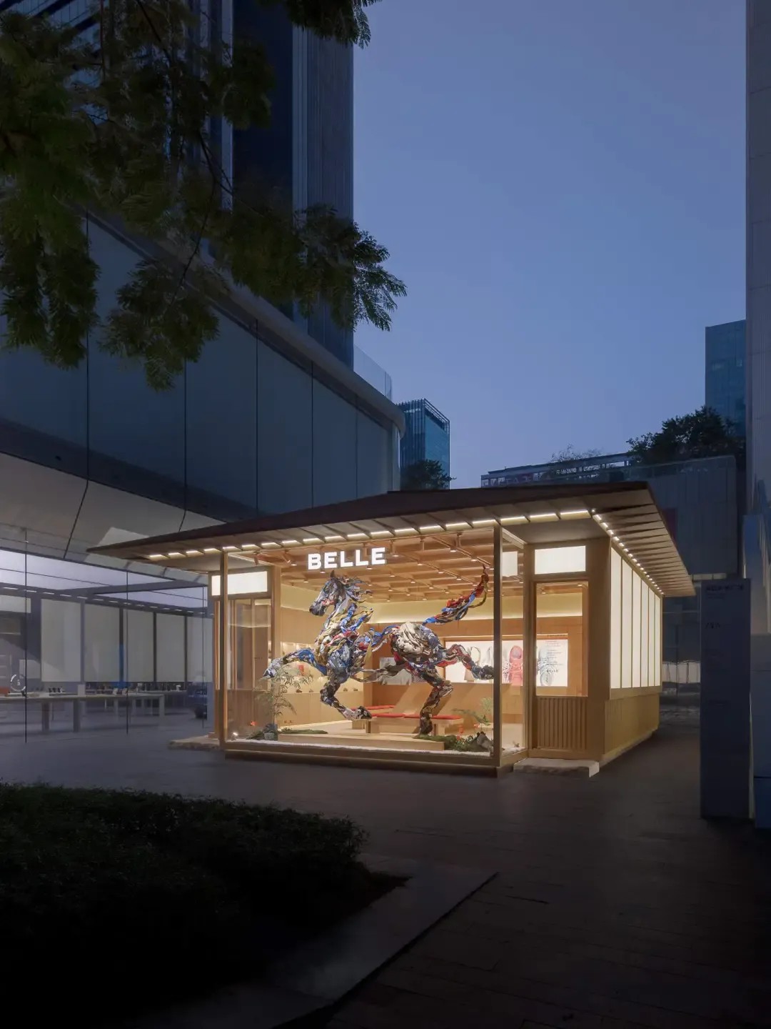 马年新春将至,百丽以“跃步加马,得意新年”为主题,和艺术家席敏深度合作,开启了专属的新年叙事,把“马踏庭院”概念的全国首展搬到了深圳万象天地潮流街区。