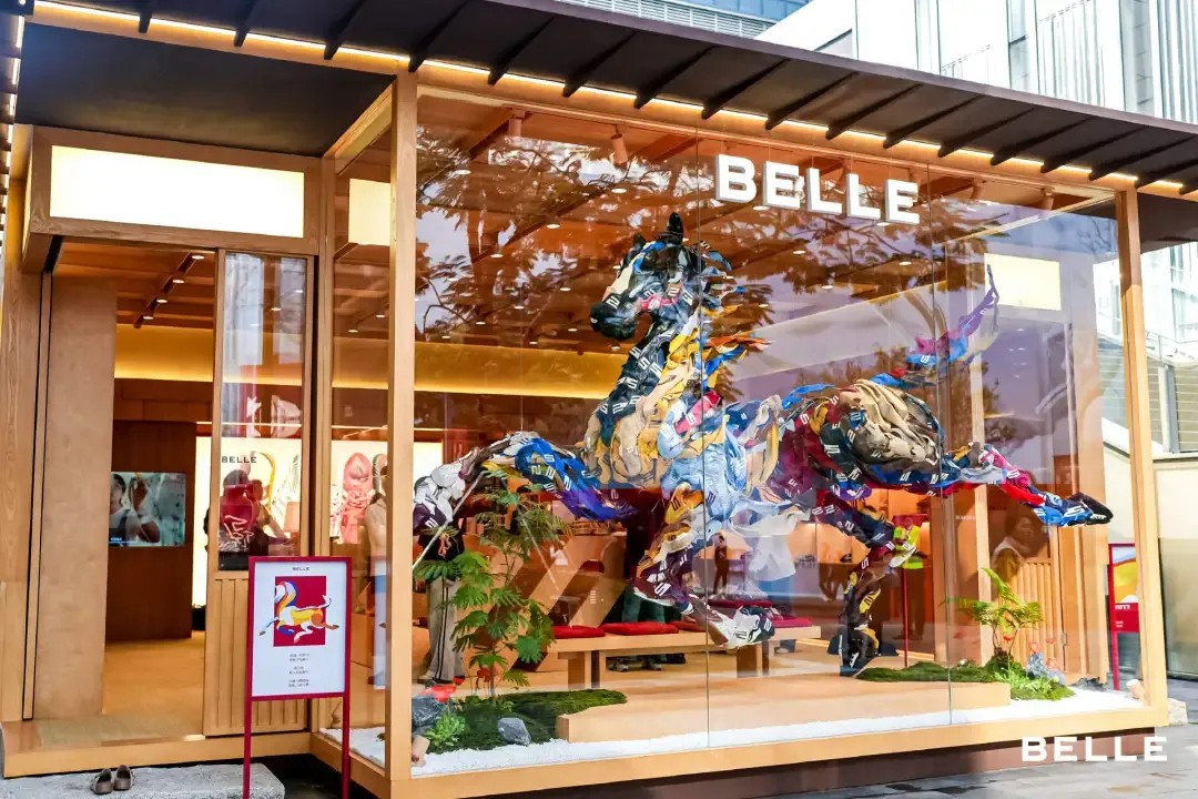 百丽直接把皮革、织物与配件等鞋履辅料当成创作材料,拼贴出奔腾的跃马,把马年的精神劲儿和艺术感完美融合,让百丽“特色中国年” IP 的内涵越来越丰富。线下快闪空间也把氛围感拉满,以“跃马”装置为核心,搭配光影、织物这些元素,营造出又暖又有艺术范儿的沉浸场景。