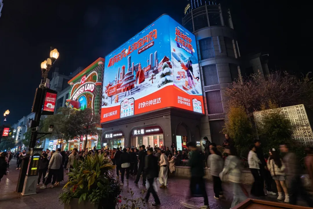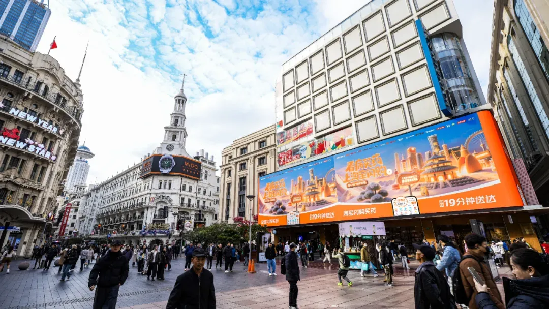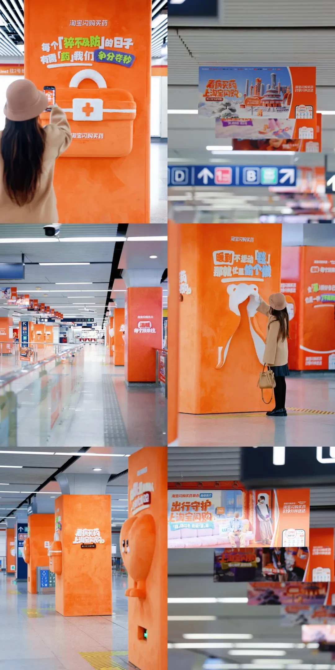 除了地铁包柱,线下场景还进一步延伸,橙色主视觉登陆北京、上海、武汉等城市中心大屏,同时渗透社区大门、大堂及电梯媒体,形成“城市地标+社区生活”的全覆盖网络,让温暖意象无处不在。多场景、多渠道布局,既保证了覆盖面,又精准触达通勤白领、社区家庭、年轻网友等不同人群,夯实“看病买药上淘宝闪购”的平台心智。
