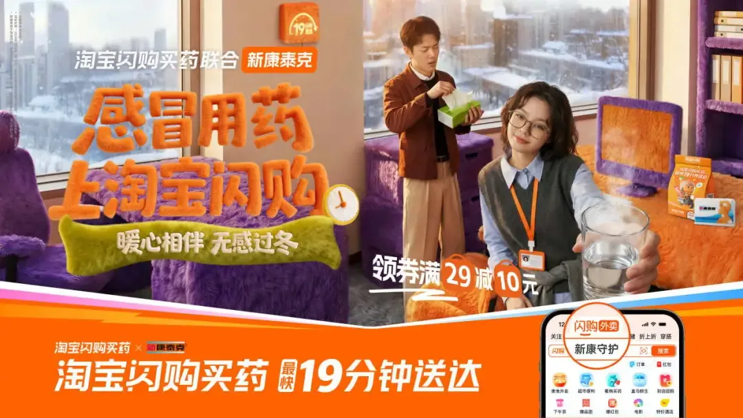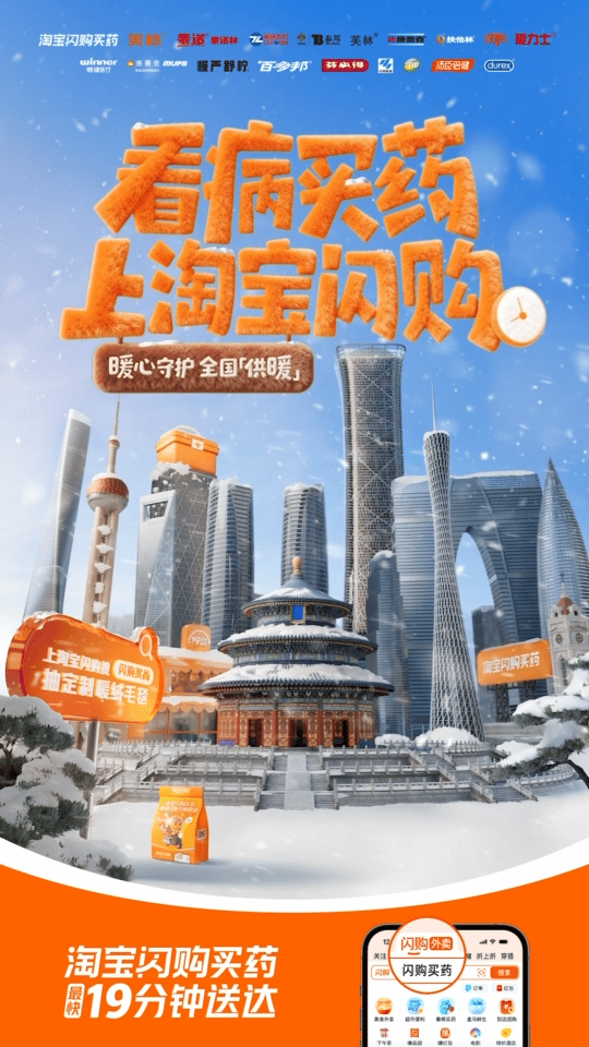 本次淘宝闪购买药的冬季传播战役,展现出两个鲜明特点:
