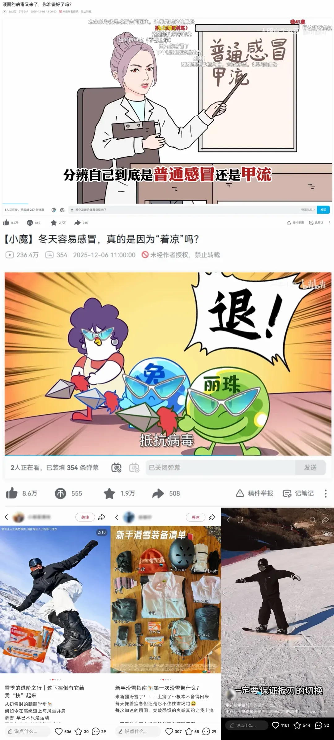 与丽珠品牌围绕感冒防护需求,在 B 站携手动画类 UP 主打造趣味科普视频,生动拆解冬季感冒的那些事儿;而与扶他林的合作,更是借力冬季滑雪风潮,在小红书上打造运动防护相关话题,将产品融入年轻用户的兴趣场景。这种趣味化的内容植入,跳出了传统医药广告的严肃刻板框架,用年轻人喜爱的方式传递健康产品信息,让专业的健康知识,变得好玩、好懂、好接受,也顺势完成了平台和品牌心智的软性植入。