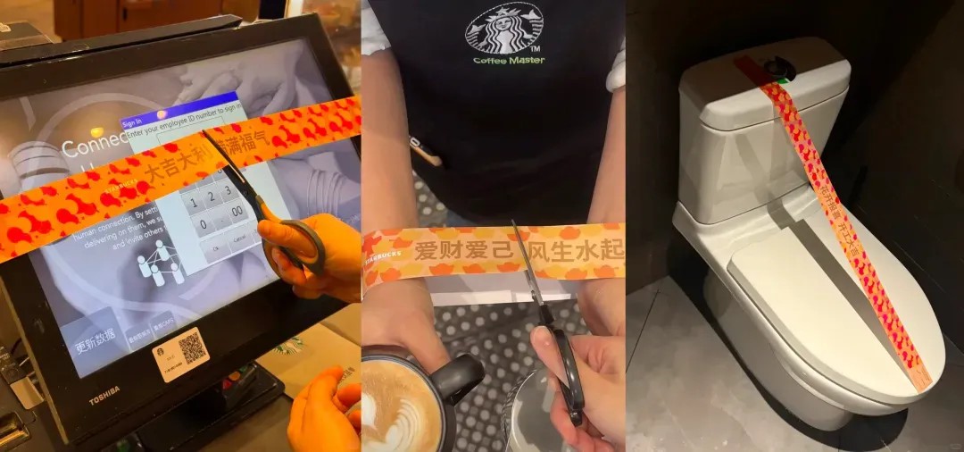 正式开工第一天,点一杯星巴克就可以领取一条写着吉祥语的彩环。