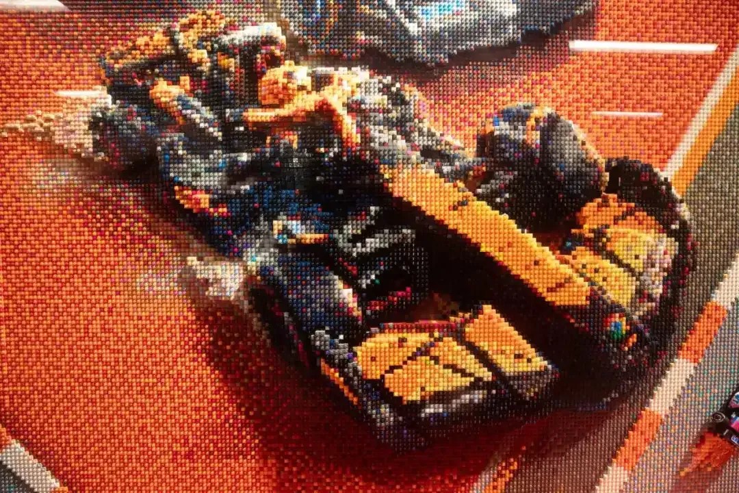 不止“F1 痛车”,还有“痛铁”,乐高把 F1 赛场搬进了上海徐家汇地铁站,整个展厅都是浓浓的赛场氛围,一面巨幅的乐高 F1 赛场积木拼图橱窗,高度还原了赛场弯道超车的高燃场面,看得人热血沸腾。