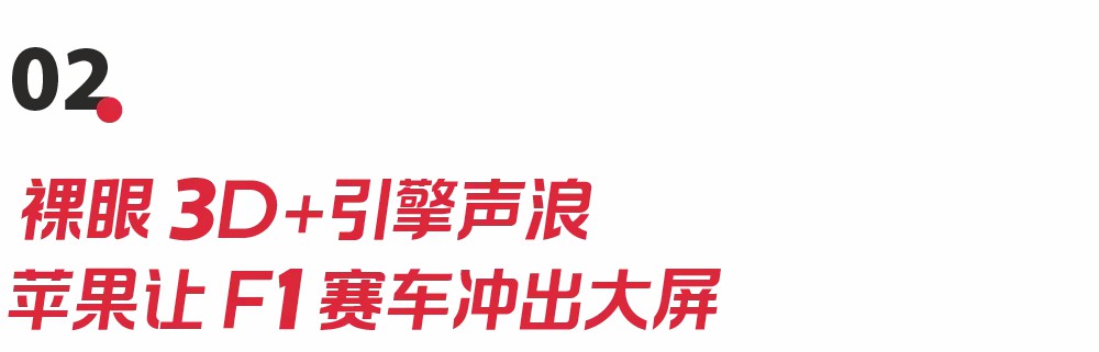 今年苹果拿下了 Apple TV 独家播放美国一级方程式赛车的版权,支持同时开启多个画面观看不同车手视角。正值赛事期间,苹果在户外裸眼 3D 大屏上,让 F1 赛车直接从屏幕里冲了出来。