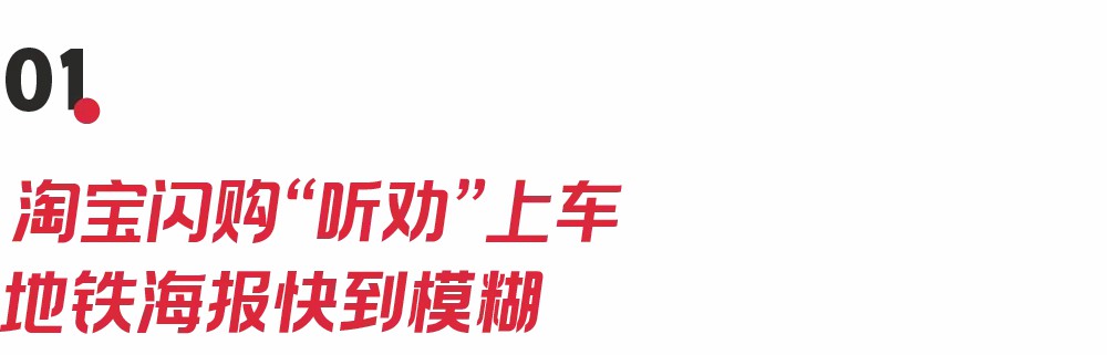 模糊的 LOGO 是淘宝闪购配送极速的具象化,也是对 F1 赛车高速赛场的趣味致敬,赛车 buff 直接叠满,又十分贴合飞驰而过的地铁场景,让人一眼就能 get 到淘宝闪购「速度快」的品牌心智。