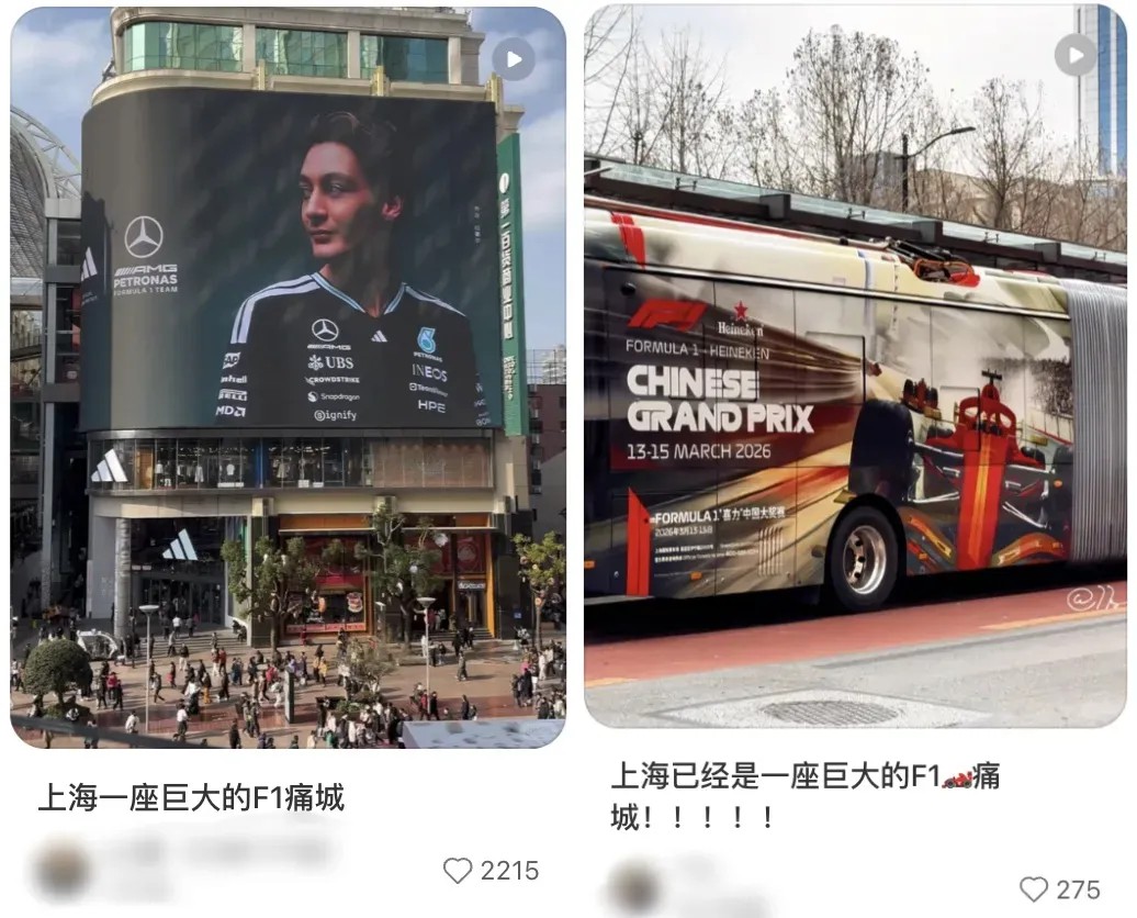 社交平台上一半在偶遇 F1 赛车手🏎,一半在蹲观赛搭子,上海的赛车浓度高达 200%,让网友们羡慕不已。