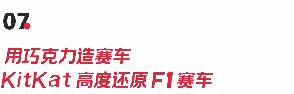 这台巧克力赛车的车身轮廓、轮胎细节都复刻得一丝不苟,谁看了不惊叹一句太逼真了。KitKat 还同步上线了一款赛车造型的巧克力礼盒,把迷你巧克力赛车装进盒子里,人生第一台 F1 赛车(巧克力版)是 KitKat 给的。