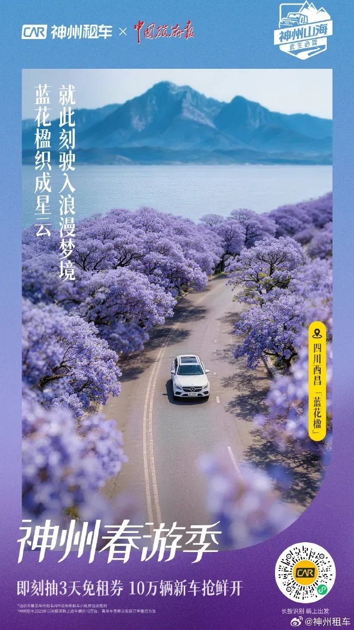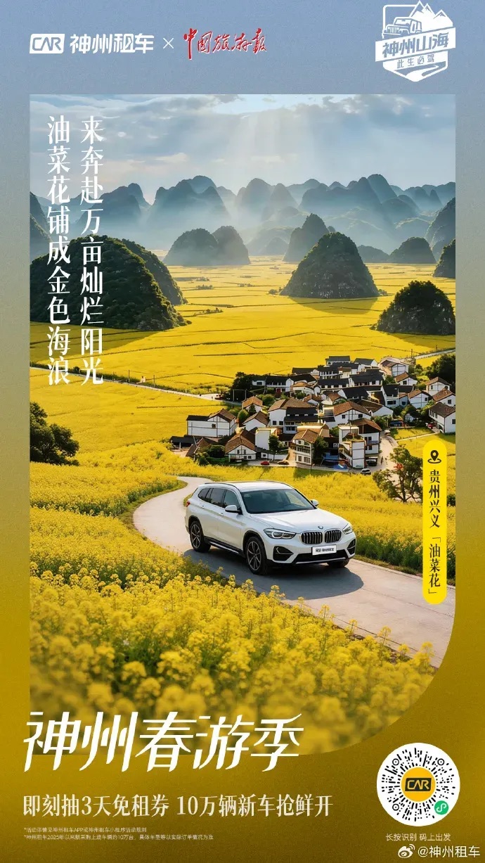 春季是各地文旅推广的黄金节点,官方文旅有丰富的春日目的地资源、旺季推广需求,但缺乏触达自驾用户的精准渠道;神州租车有海量用户、有高频出行场景,但需要贴合春季的特色内容激活用户。双方一拍即合:文旅局输出春日限定的目的地权威性和景观资源,神州输出用户触达能力,共同把春季自驾游这个细分品类做深做透,实现旺季流量与品牌声量的共赢。