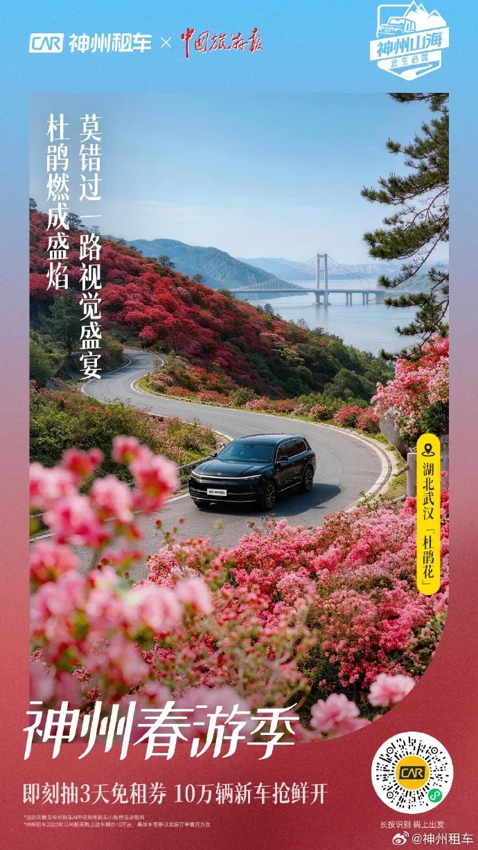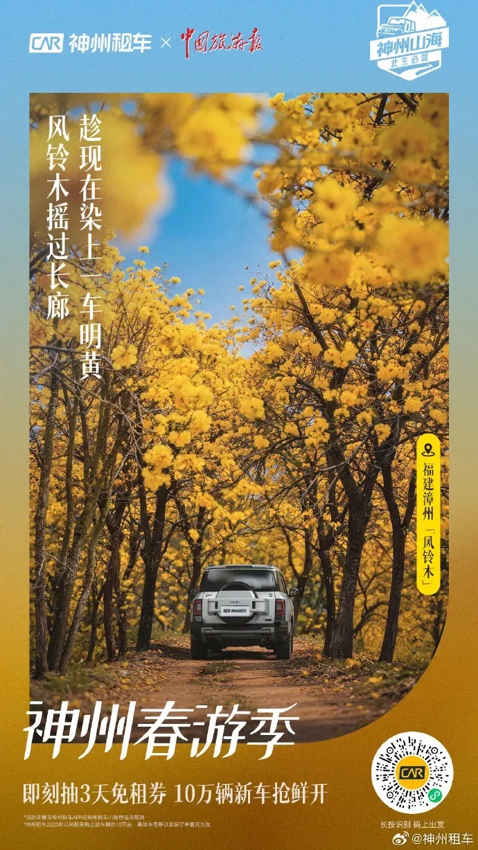 过去,租车品牌只是旅行链条中的工具环节,现在,神州租车通过与文旅资源的深度绑定,精准匹配春季出行的独特需求,成为了连接人和目的地之间的桥梁,品牌不再只是提供车辆,更是提供去哪里、怎么去、玩什么的完整旅行解决方案。这种商业品牌+专业媒体+地方文旅的协同模式,也为旅游行业提供了新的推广思路。
