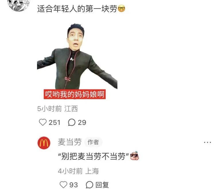 这么炸裂的单品一出,网友调侃麦乐 Watch 是“适合年轻人的第一块劳”,麦麦顺势接梗:“别把麦当劳不当劳。”
