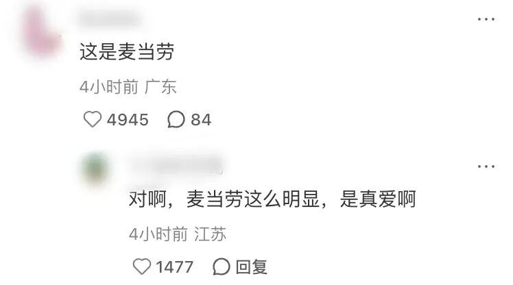 面对官方的忽悠,评论区的网友们也是根本不按套路出牌,干脆放弃思考一通乱猜,发起“攻击”,当场上演“指肯为麦”:这是麦当劳。
