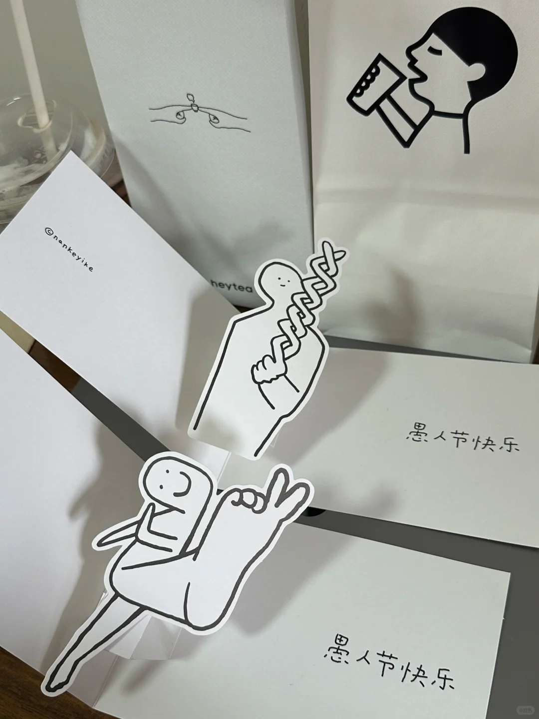 作为一家被卖奶茶耽误的设计公司,喜茶这次把愚人节当成了自家设计部精神状态大赏的汇报现场,在周边物料上狠狠发力,设计了两张极其抽象的愚人节专属小卡。