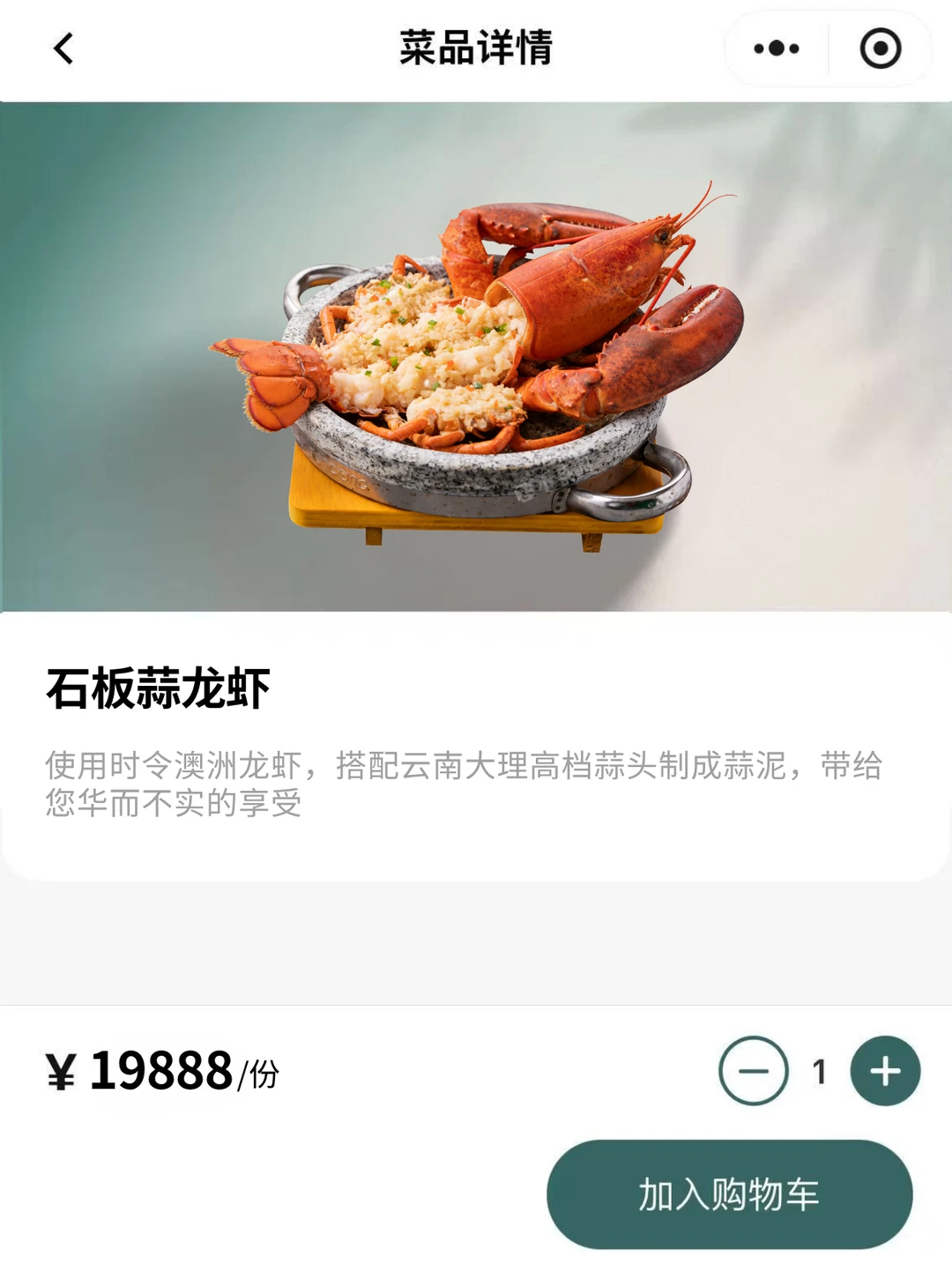 【石板蒜蓉虾】也升级成进阶版【石板蒜龙虾】,亲民平价的石板蒜蓉虾被开除,换成了身娇肉贵的澳洲龙虾,标价竟然飙到了离谱的 ¥19888,声称“带给您华而不实的享受”。