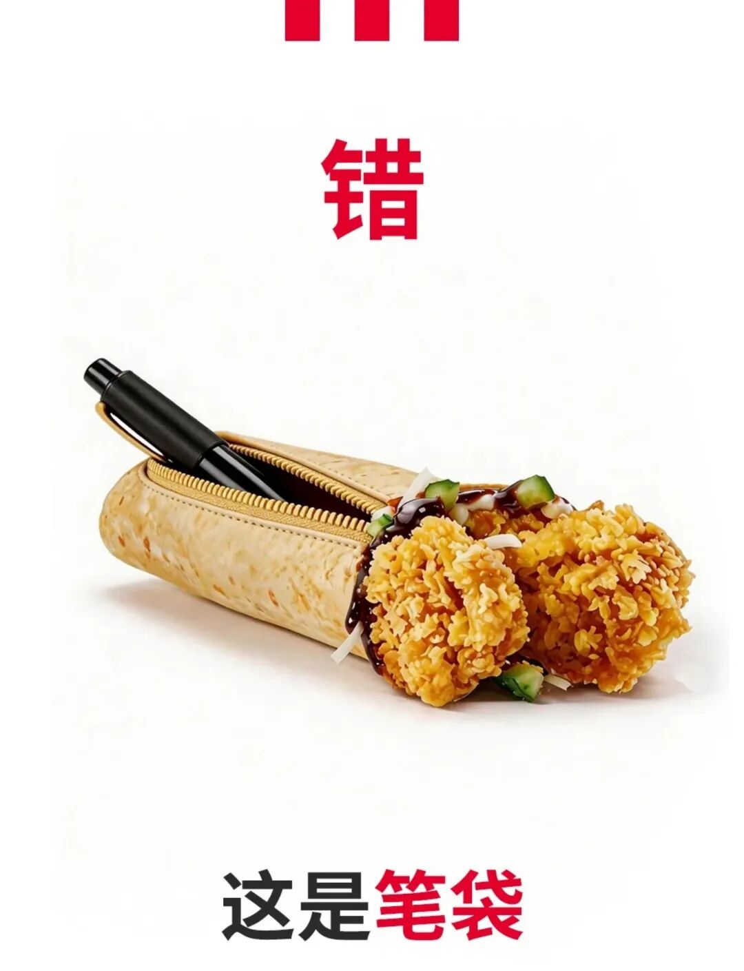 起初画风还很正常,看着是个香甜诱人的蛋挞,但它其实是一面小镜子。你以为是老北京鸡肉卷,其实是同造型的笔袋。你以为是吮指原味鸡,其实是一块标志牌。如此挂羊头卖狗肉的神奇脑洞,害得小编莫名其妙笑了一下,有种大脑被按在地上摩擦的抽象感。