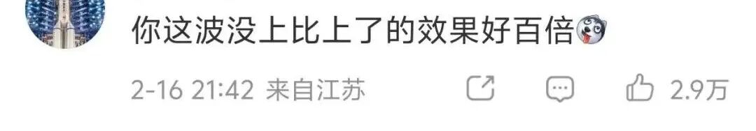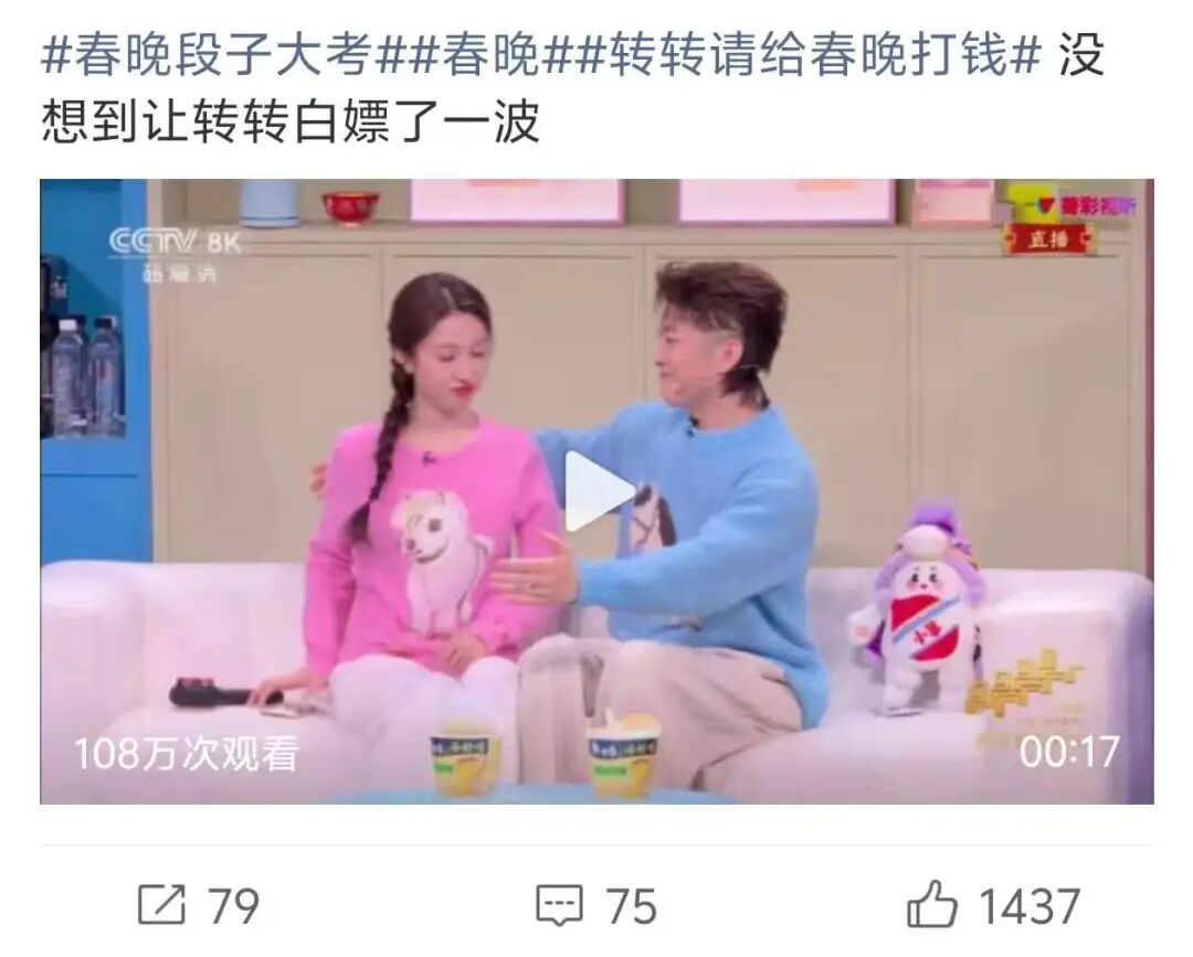 出乎意料地没接上那耳熟能详的广告语,不按广告剧本来,好一招预期违背,也是给全网观众吓一跳,都在喊话“转转请给春晚打钱”,不然怎么连广告语都没能完整接上。
