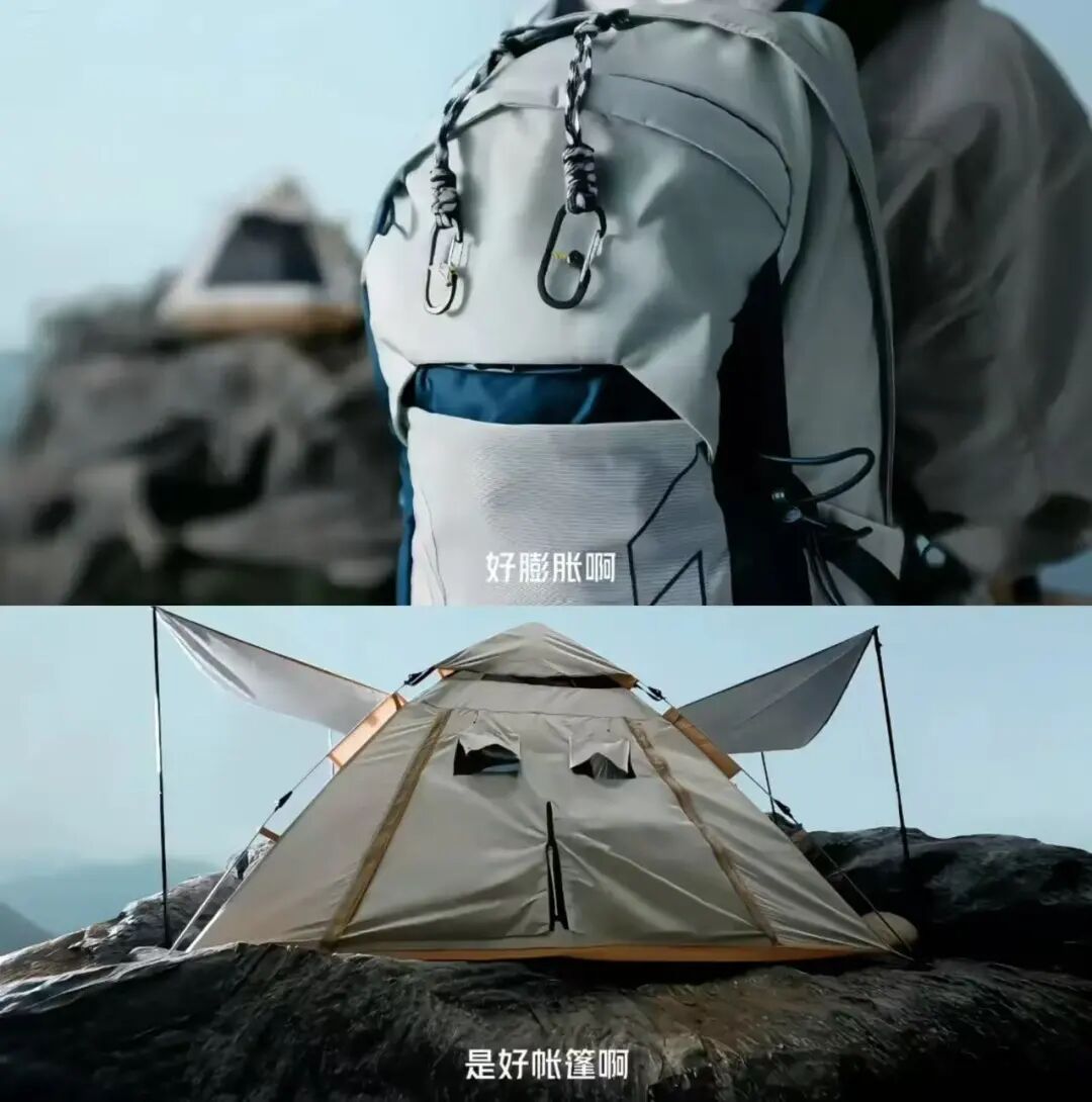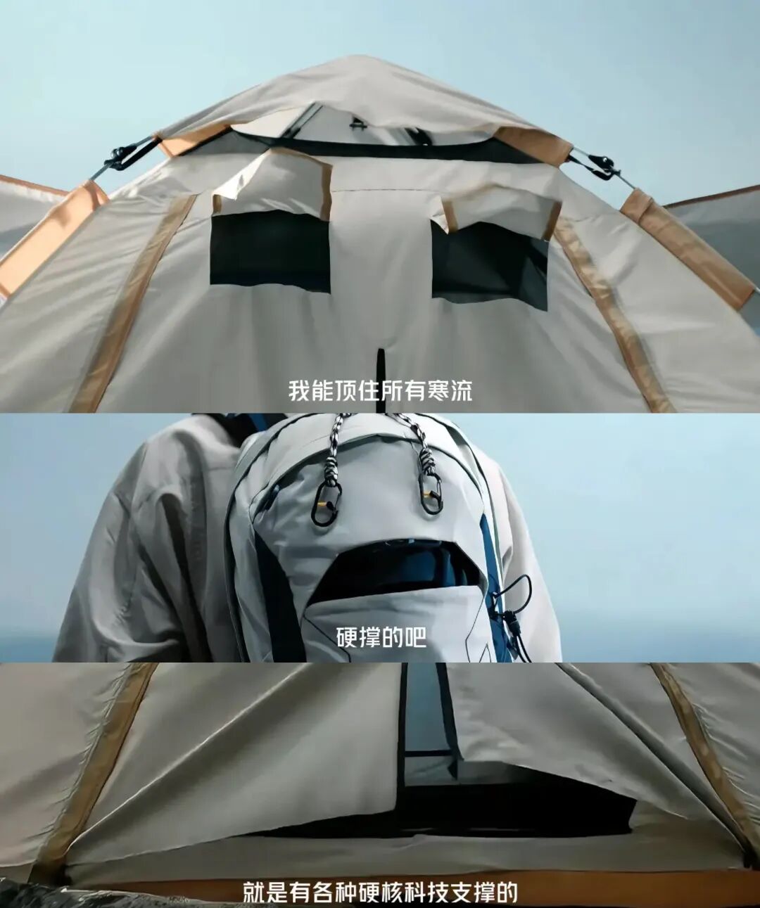 一开始,帐篷和背包的对话就是一个巨大的「你拆台来我乱答」副本。被人阴阳怪气了小编也要这样嬉皮笑脸地装不懂:「硬撑的吧——就是有各种硬核科技支撑的!」
