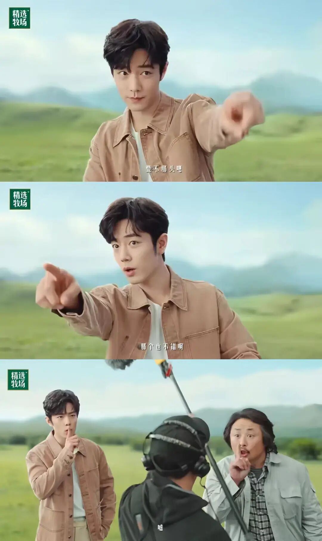 在这场名为「拍广告」的修行中,我们看到了一个快节奏现代社会与慢节奏自然法则的极致碰撞😈。短片以牧场管理员、肖战和导演团队三个不同视角切入,三线并行,而对于同一时间线下三重不同情绪反应碰撞的设计,小编这边给到一个人上人。