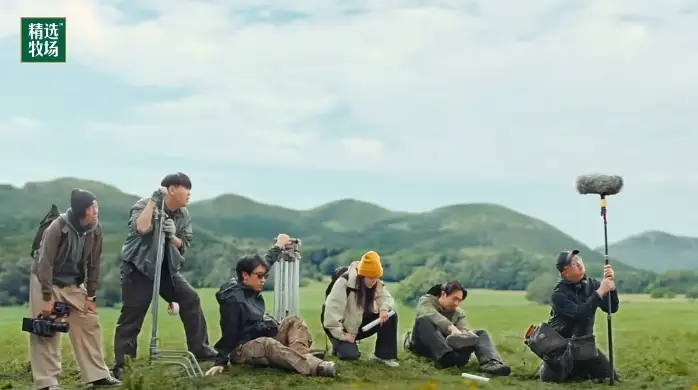 这一次,品牌方大胆地放弃了所有关于「奶源有多好、草地有多高质」的空洞赞美,而是采用了一种伪纪录片的元视角(即 Meta-perspective),全程跟拍记录了拍摄团队在这个过于挑剔的牧场里,经历的一系列令人崩溃的日常。