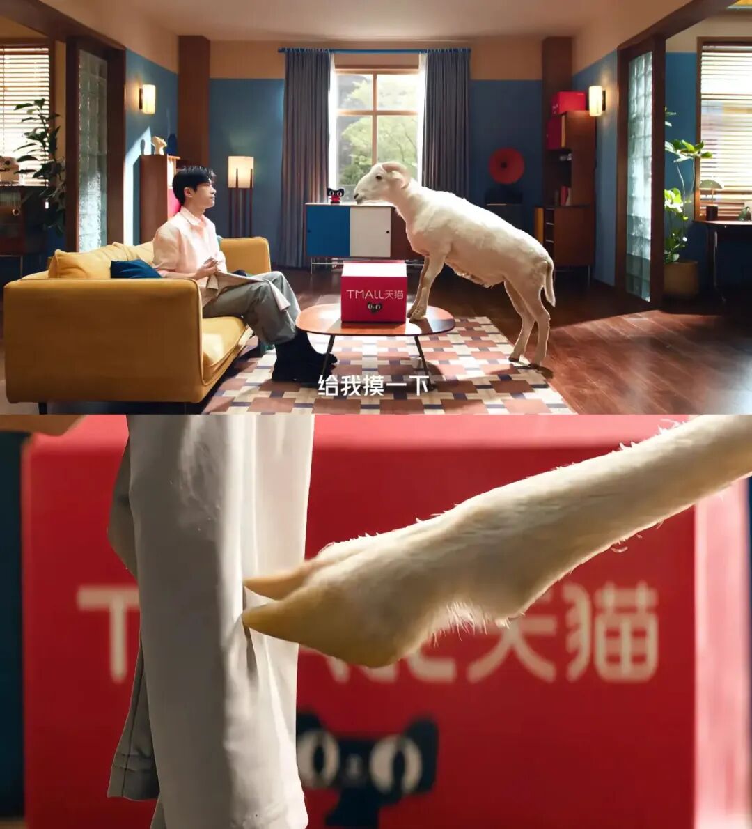 品牌方甚至玩起了代言人的姓名梗,静静地看着「一羊迁徙」到了「易烊千玺」面前,走上茶几问「真的咩,能比羊毛舒服咩?」。