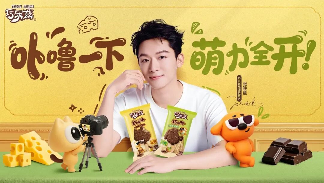巧乐兹是会拿捏年轻人的情绪消费的,用萌系 IP+反差代言,把治愈感变成吃得到的快乐。巧卟卟、巧噜噜自带萌趣传播属性,搭配张晚意的国民度,不仅让产品出圈,更让“快乐、治愈、陪伴” 的情绪价值深入人心,在内卷冰品赛道卷出差异化。