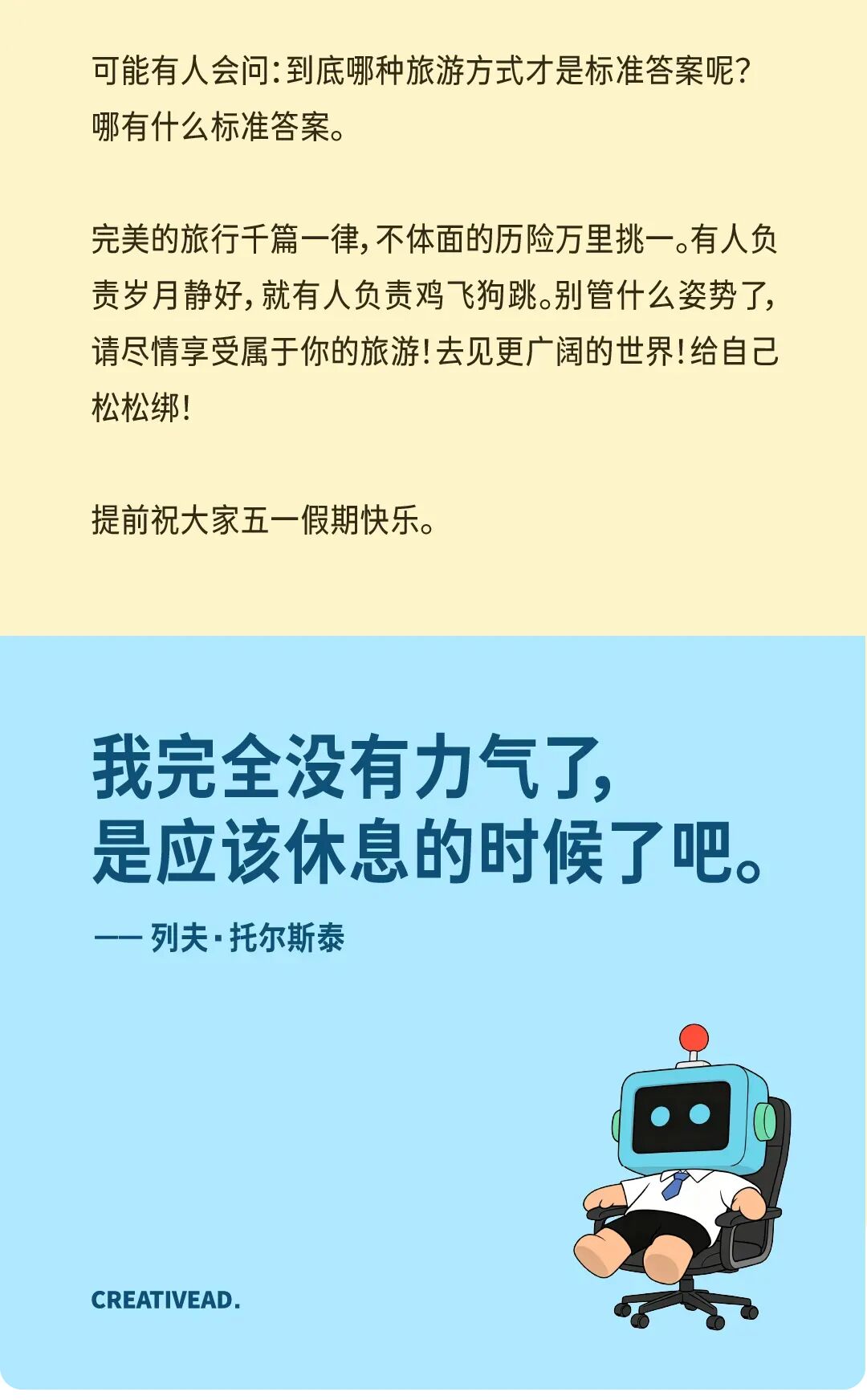 五一特辑 |《人在囧途》之同一个世界,不同的旅游姿势 3小时前 条漫 节日 0 评论已关闭 768 转载原创文章请注明,转载自: 创意广告 - 五一特辑 |《人在囧途》之同一个世界,不同的旅游姿势 (https://www.creativead.com.cn/archives/13600) 0 分享到:
