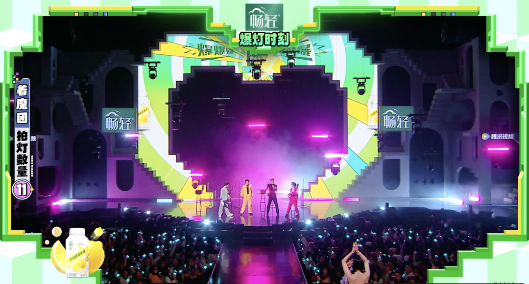 畅轻盯上了全场最嗨的爆灯环节,将“爆灯”晋级的赛制,与畅轻“爆有料”的产品概念灵魂绑定。每一次高燃的舞台爆灯、激动的颁奖时刻与庆功时刻,都是一次品牌心智强化,与观众们一同见证选手晋级时刻的荣耀。畅轻借着节目的高光情绪,潜移默化地把品牌深深印在了大家的脑子里。