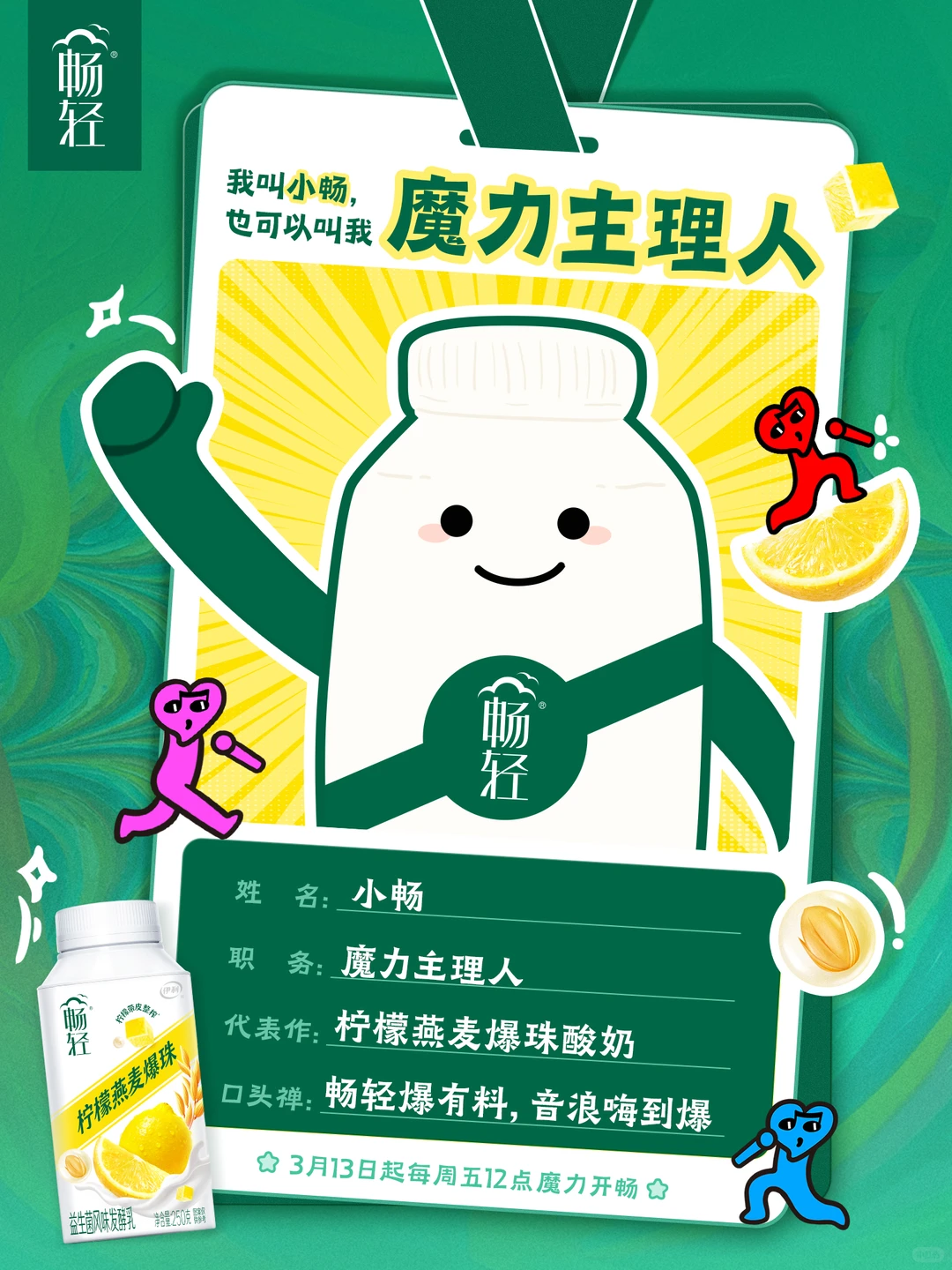 节目开播前,小畅就解锁了“魔力主理人”身份,带着爆爆爆有料的「畅轻柠檬燕麦爆珠酸奶」,在《魔力歌先生》和大家一起听爆爆爆有料的魔力歌。
