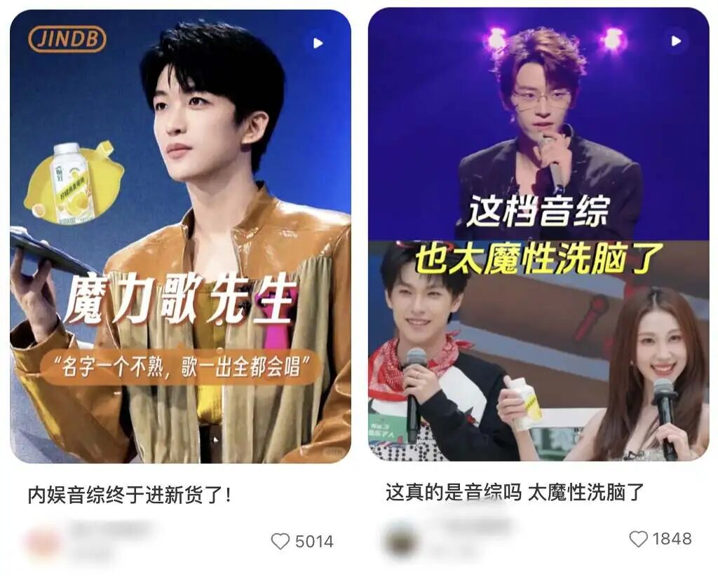现在 18-35 岁的年轻人,其实也背负着不小的压力,急需一个情绪宣泄的出口。而《魔力歌先生》主打的神曲改编和魔性欢乐的氛围,用嗨到爆的音乐,给年轻人一个沉浸、享受、解压、放松的出口,满足大众日常放松、舒缓压力的情绪需求,吸引了不少爱玩梗、爱参与的Z世代。节目的调性,与畅轻的目标受众达到了你中有我我中有你的同频。
