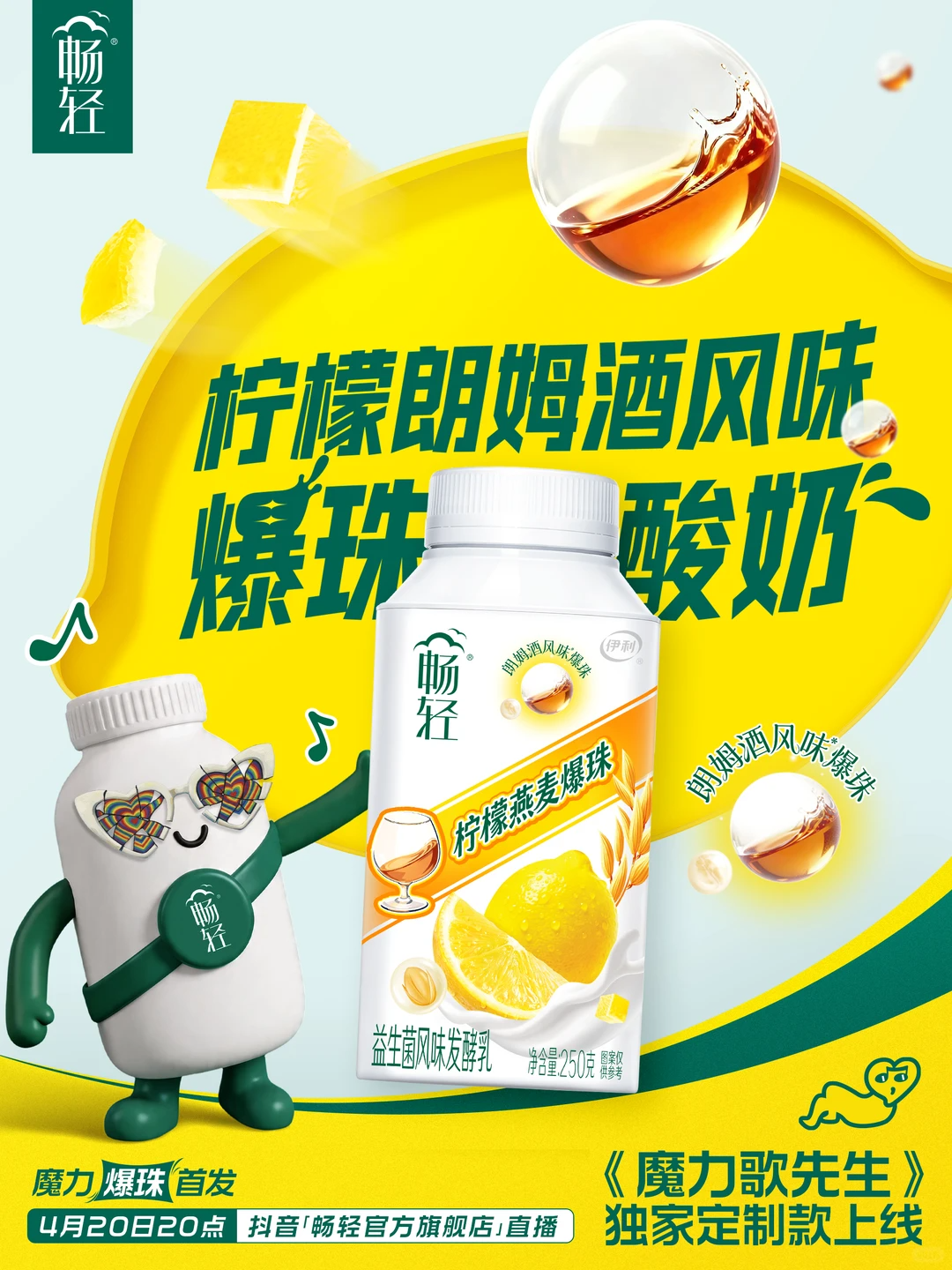 畅轻甚至还推出了节目独家定制款的魔力爆珠酸奶,里面添加了清爽柠檬、燕麦大爆珠、独特朗姆酒,越喝越上头,让更多消费者能够边看魔性的节目,边喝魔性的酸奶,把节目里快乐的氛围传递到每位观众手里,真正做到体验感拉满。