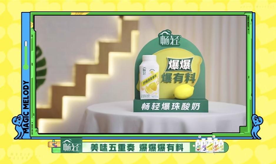 天时地利人和,也造就了畅轻这位满分的追综搭子。节目 4-5 月的播出周期,恰逢低温酸奶品类的生意旺季,在这个气温走高的时节,畅轻的柠檬燕麦爆珠新品凭借清新的风味和丰富的口感,给消费者带来了更多美味愉悦的新选择,自然就成了最佳的看音综搭子,轻松实现从曝光到种草的一步到位。