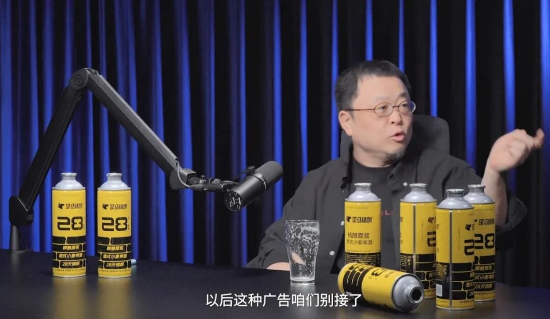 最明显的,是产品的露出极其自然。罗永浩每次被问住,就拿起手边的啤酒喝一杯。观众甚至不需要任何旁白提示,就已经看到了产品。而且他不是只喝一次,是连续喝了五六次,这叫“高频次、低侵略性”的产品展示。