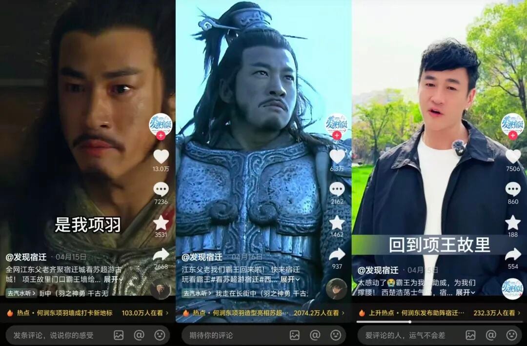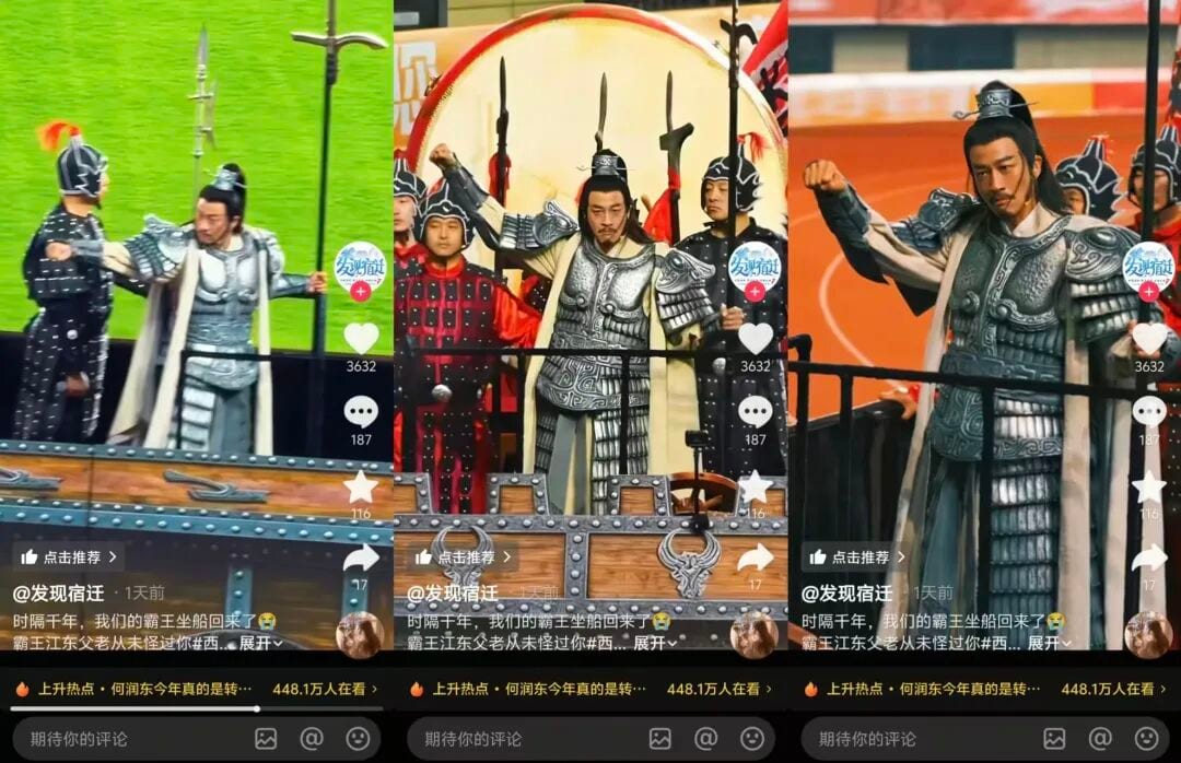 最近何润东当年在《楚汉传奇》里演的项羽,突然全网翻红,一身战甲、气场全开的样子,狠狠戳中大家对真・霸王的审美点,二创刷爆社媒。而又正值苏超赛事期间,宿迁作为项羽故里,主打一个听劝——网友前脚刚在评论区许愿“想看霸王回江东”,官方就真一脚油门,把本尊请到了现场!