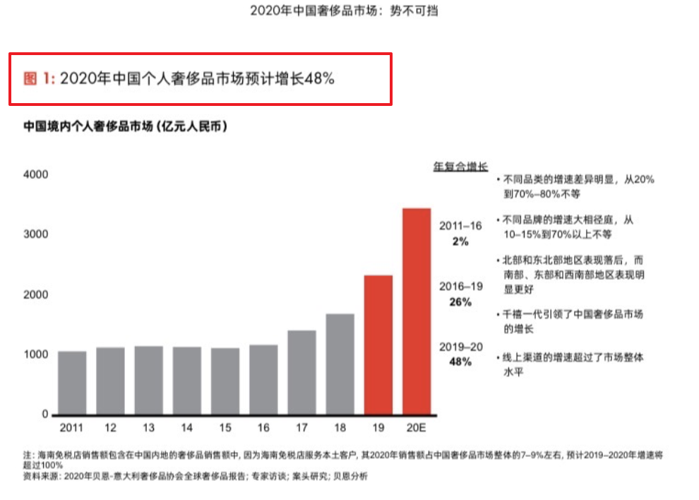 在奢侈品行业,“假货”问题一直是品牌们的心头病。 对于品牌来说,动辄数十万的包包、首饰,最大的获利点就是刨去成本后的品牌溢价部分;但对于假货贩子来说,大多只需要低成本地拆解拷贝,就能借正品的名头狂赚差价。 加上国内奢侈品市场一片火热,根据知名咨询公司贝恩发布的报告《2020年中国奢侈品市场:势不可挡》,在2020年全球奢侈品市场遭受重创、萎缩23%的大背景下,中国境内奢侈品消费却逆势上扬48%,达到3460亿元。
