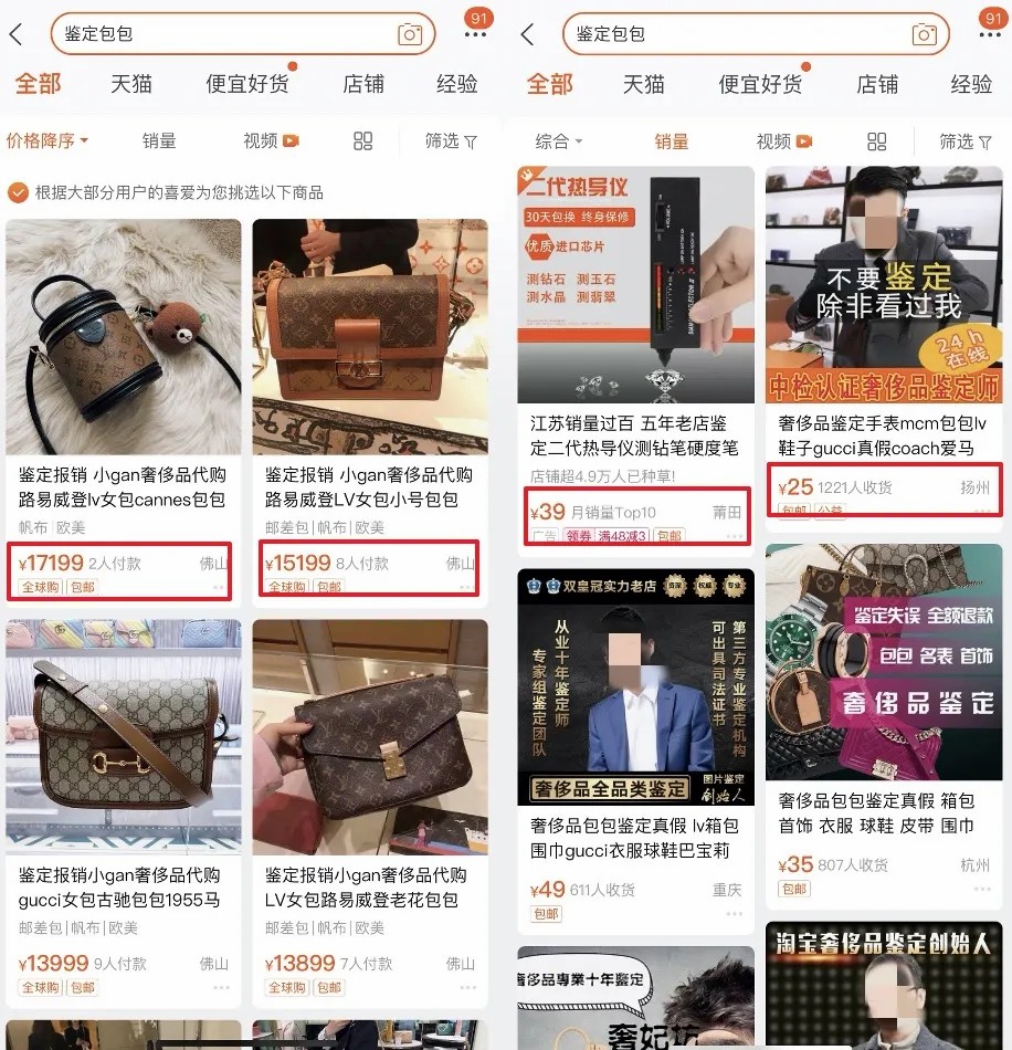(图源 前程无忧) 在某宝上搜索“包包鉴定”,月销最高的也只有1000+,收费基本都在百元以内,收费上万的鉴定服务更是销量惨淡。