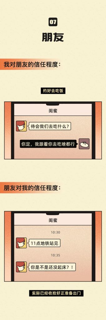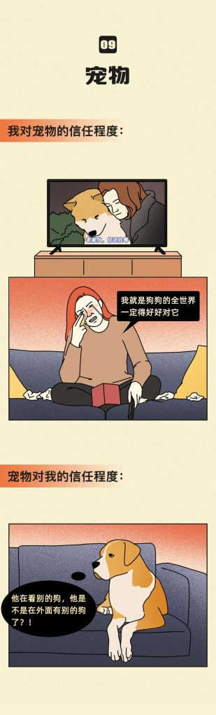 条漫 | 当代人类信任关系的十大差距 2021.11.24 条漫 0 评论已关闭 4642 信任是个很玄妙的东西 没有平等和一模一样可言 你单方面的满级信任 对方却偷偷对你起了疑心 说好的彼此互相信任呢 到最后就是这样对我们的 转载原创文章请注明,转载自: 创意广告 - 条漫 | 当代人类信任关系的十大差距 (https://www.creativead.com.cn/archives/4752) 0 分享到:
