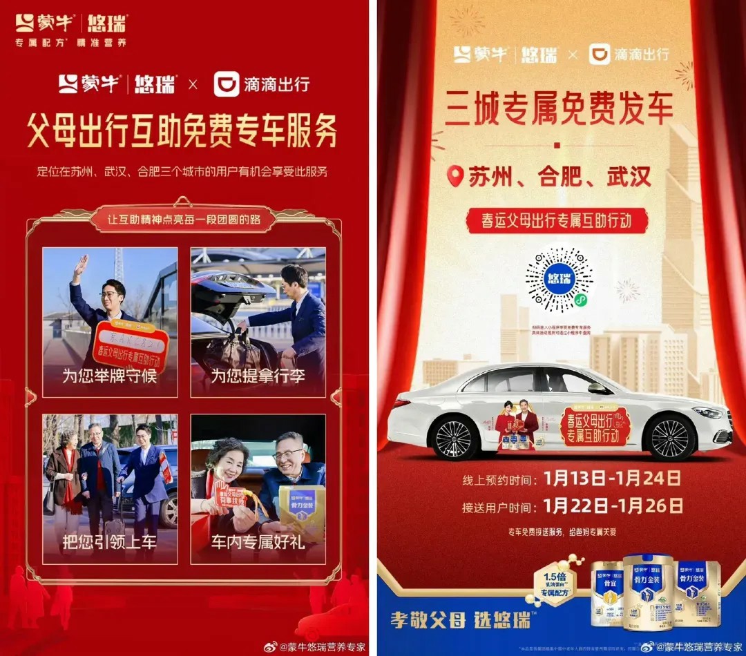 在“告白”这一情感沟通的基础上,蒙牛悠瑞进一步联合滴滴发起了“父母出行专属互助计划”,在苏州、合肥、武汉核心三城的高铁、机场中,设置专门的“互助小站”,为中老年人提供父母出行互助免费专车服务,把这份关爱落到实处,实现从“说到”到“做到”的跨越。