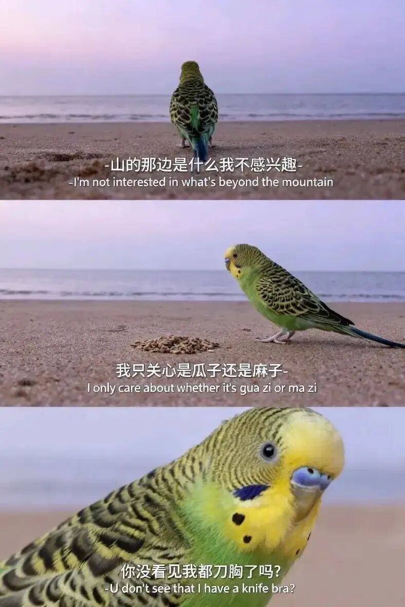 不过,很快,萌宠界来了个「魔童」选手,从憧憬远方的诗意萌物摇身一变,回到了平日里最熟悉的样子。其中阿广印象最深刻的就是各位小鹦鹉的发言: